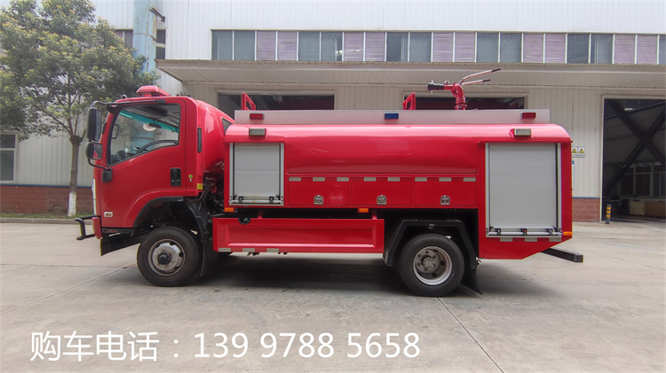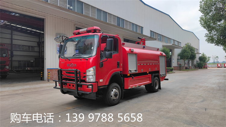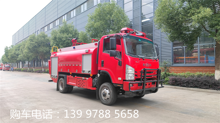 慶鈴700P水罐消防車,水罐容積4.2立方米,四驅(qū)。 主要專用裝置有消防泵、消防車炮。