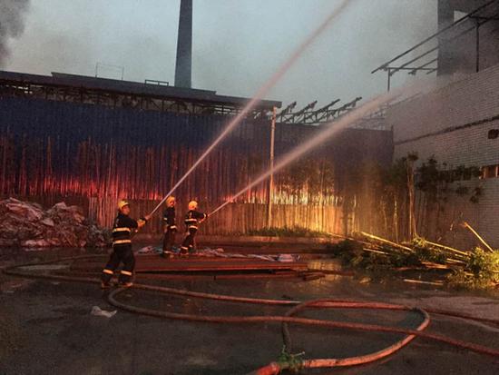 消防官兵在起火點(diǎn)周圍分別架設(shè)水槍水炮以及高噴消防車對(duì)火勢(shì)進(jìn)行壓制。針對(duì)燃燒物質(zhì)為P2O4有機(jī)溶劑和裝硫酸鋅的特殊情況,現(xiàn)場(chǎng)指揮部對(duì)滅火作戰(zhàn)力量進(jìn)行重新分配,集中優(yōu)勢(shì)兵力、優(yōu)勢(shì)裝備,采用泡沫水槍對(duì)起火點(diǎn)進(jìn)行全方位覆蓋。大火于早上6點(diǎn)50左右被成功控制,由于鋼結(jié)構(gòu)建筑已完全坍塌,內(nèi)部仍存在部分余火,消防部門現(xiàn)場(chǎng)調(diào)來挖掘機(jī)對(duì)廠房進(jìn)行拆除,對(duì)挖出的可燃物質(zhì)及時(shí)進(jìn)行水槍覆蓋。